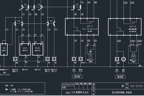 日生電機では制御盤の設計、製作から機内配線工事、現地工事、試運転調整まで一貫して請負い可能な体制を敷いております。水処理設備、半導体装置、食品関連設備、塗装ライン設備等、多分野に渡る納入実績があります。大きなものから小さなものまで一品一様の制作を得意としております。また、組立配線のみのご依頼やハーネスのコネクター処理なども承っております。お客様のご要望に沿ってフレキシブルに対応いたします。お気軽にお問い合わせください。